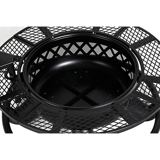 The 360-degree swiveling grill allows for easy access and precise cooking control, while the adjustable height feature, secured by screws, ensures optimal grilling results. The outer ledge design offers a convenient space to place drinks, food, or roasting supplies, making it a versatile centerpiece for any outdoor gathering. With high-temperature black powder coating, this fire pit is built to withstand heat and weather, ensuring lasting performance.