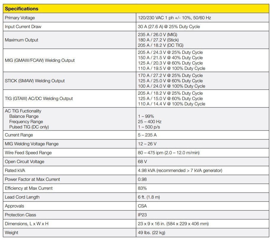 The ESAB Rebel EMP 205ic features sMIG technoloty. sMIG is an exclusive, dynamic arc control that constantly monitors complex arc characteristics adapting to your technique to provide a smooth and superior weld. The Rebel features 2 modes: basic and advanced. Basic mode allows you to set wire diameter and material thickness & you’re ready to pull the trigger. The advanced mode gives you full control over all arc characteristics. The research and technology put into this machine is truly astounding (you can even access your correct consumable part numbers and user manual on the 4.3″ LCD screen). You no longer have to be a career welder or a rocket scientist to set your machine up correctly.