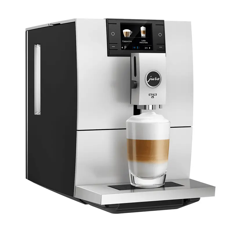 The Jura Ena 8 is designed to impress with its wide range of features yet compact size. This professional-grade espresso machine includes some of Jura’s most advanced technologies, such as RFID Claris Smart filters, complete wireless control through the mobile app, and the highly advanced Pulse Extraction Process®. With the Ena 8, you can prepare over 10 specialty coffees at the touch of a single button.