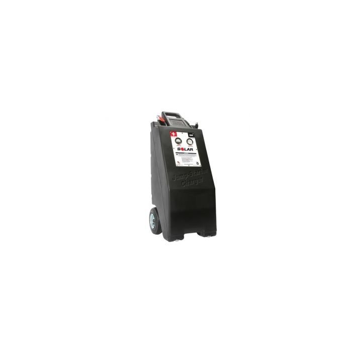 This is a commercial-grade, heavy-duty battery charger and jump starter designed to maximize space and deliver extra convenience for any shop.