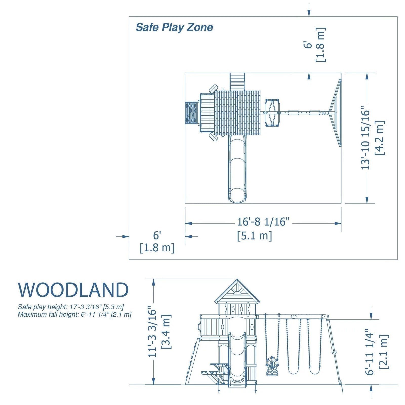 With all the charm of a forest cottage, the Woodland set has all the elements for a fairy-tale adventure. Between the upper clubhouse with 360° views, expansive sun porch, and octagon-shaped lower fort, there’s plenty of room for your kids’ imaginations to run free. They can climb up the 5’ high rock wall or ladder in search of safe reprieve from the wild jungle creatures, and then swiftly slide down when it’s all clear. They can swing alone on a belt-swing or together on the two-seated glider as if veering on vines from treetop to treetop. And they can serve pretend porridge to three little bears at the snack bar below. This set will find your family years of forest fun!